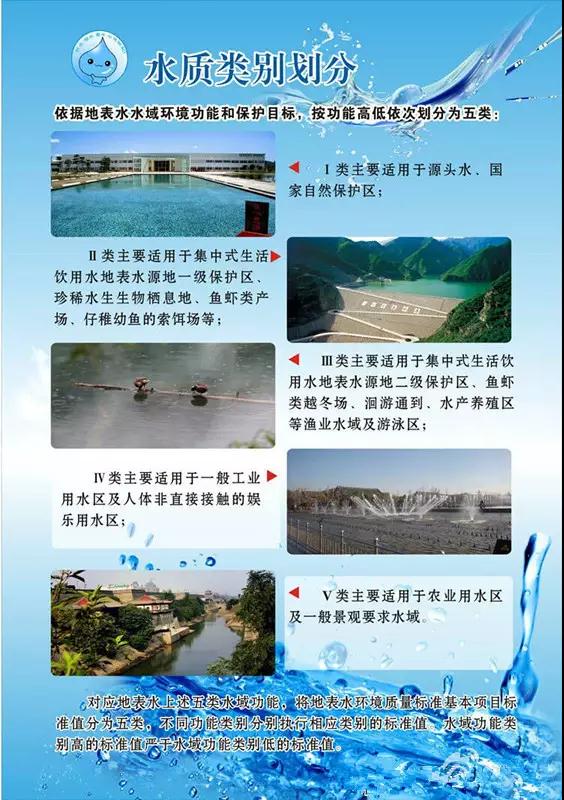 按照《中華人民共和國地表水環(huán)境質量標準》,依據(jù)地表水水城環(huán)境功能和保護目標,我國的地表水水質分為:I,II,III,IV,V和劣V類。