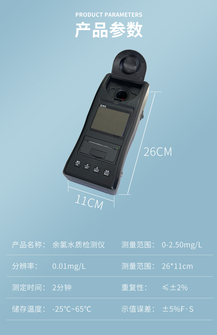 氯專項水質檢測儀參數配置: